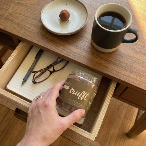 TRUFFL is a gut health support supplement, delivered in the form of a chocolate truffle. It’s not a snack or candy — one truffle per day is the full dose — but it’s designed to feel enjoyable, not medicinal.